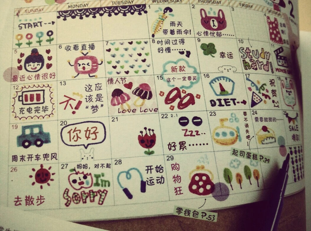 图书上的日历格子觉的画的挺温馨可以分享一下#手帐简笔画#日历表